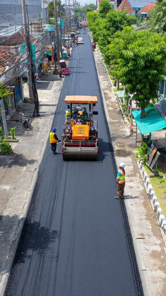 Kondisi dasar jalan adalah faktor penentu yang sering kali paling berpengaruh. Jalan yang sudah mengalami penurunan, retak lama, atau sering tergenang air membutuhkan penanganan khusus sebelum aspal baru dihampar. Tahapan seperti perataan ulang, penambalan titik lemah, dan pembenahan alur air akan menambah pekerjaan di awal.